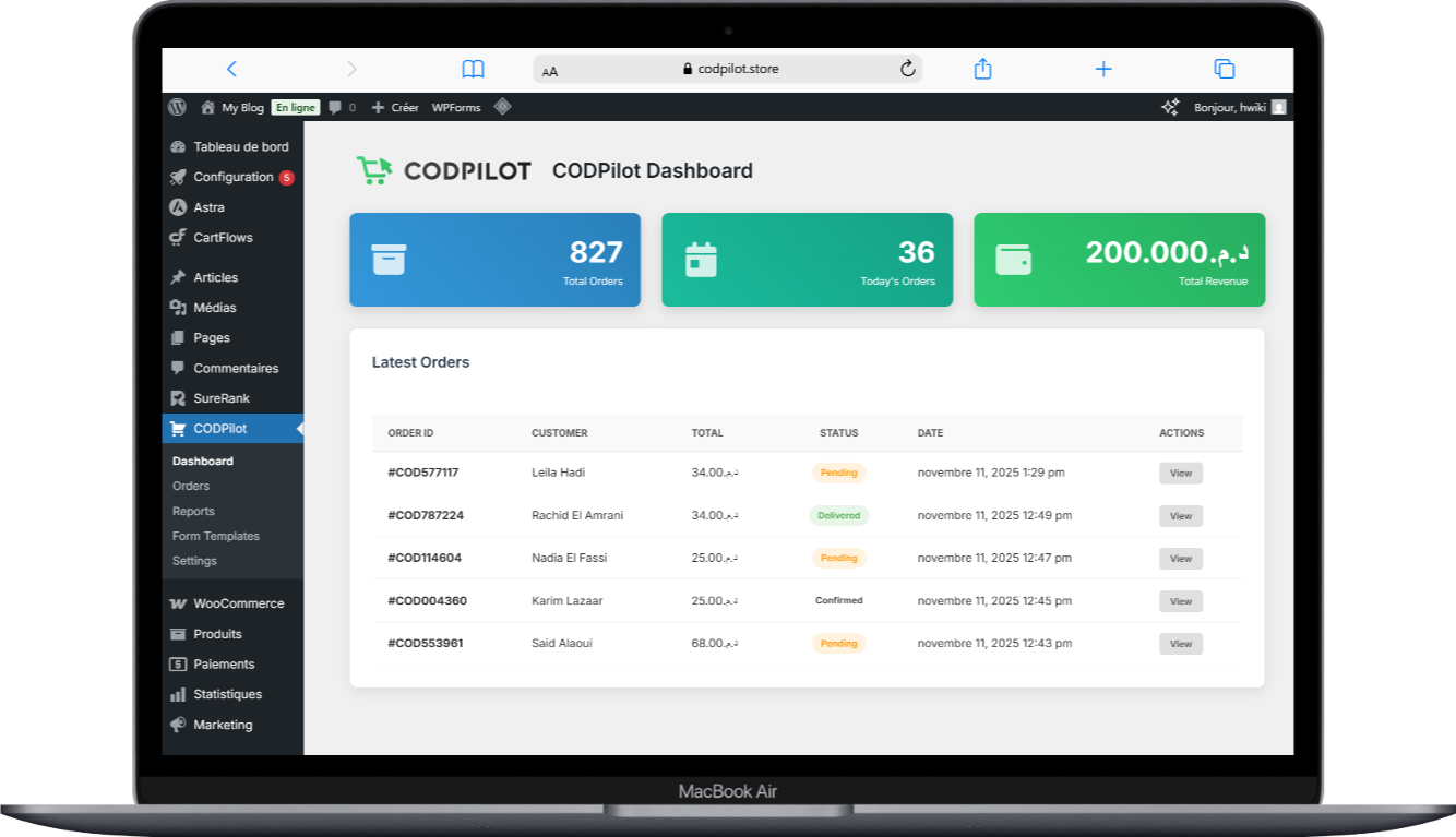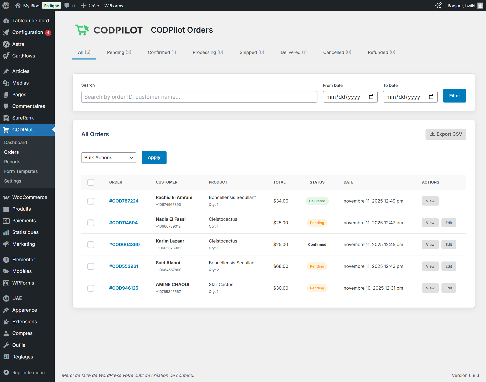 Move beyond the cluttered WooCommerce orders page. CODPilot provides a dedicated, streamlined dashboard to manage, track, and filter all your COD orders with ease.